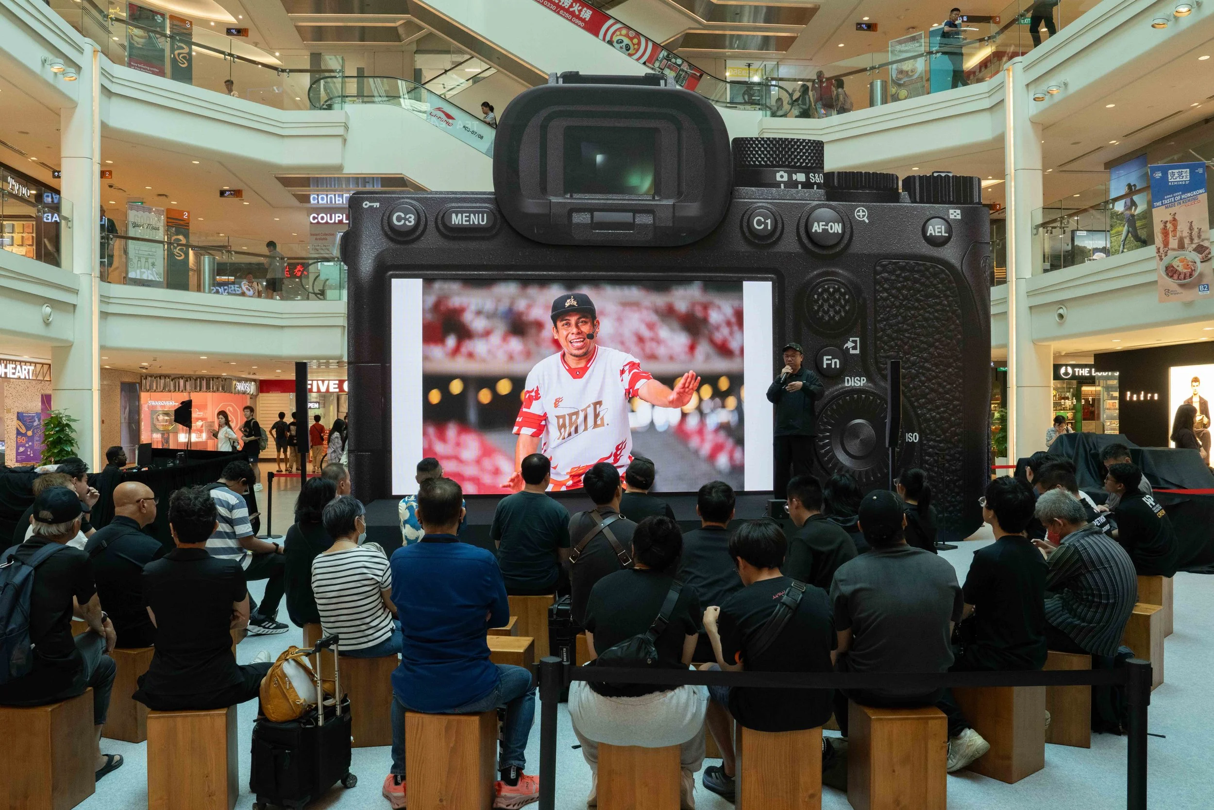 At the heart of the Plaza Singapura atrium stands a larger-than-life Sony Alpha 7 IV stage. Serving as a grand frame for the surrounding seasonal landscapes, the installation invites visitors to step into the world of photography. Whether viewed from the ground floor or the balconies above, its presence is unmistakable.